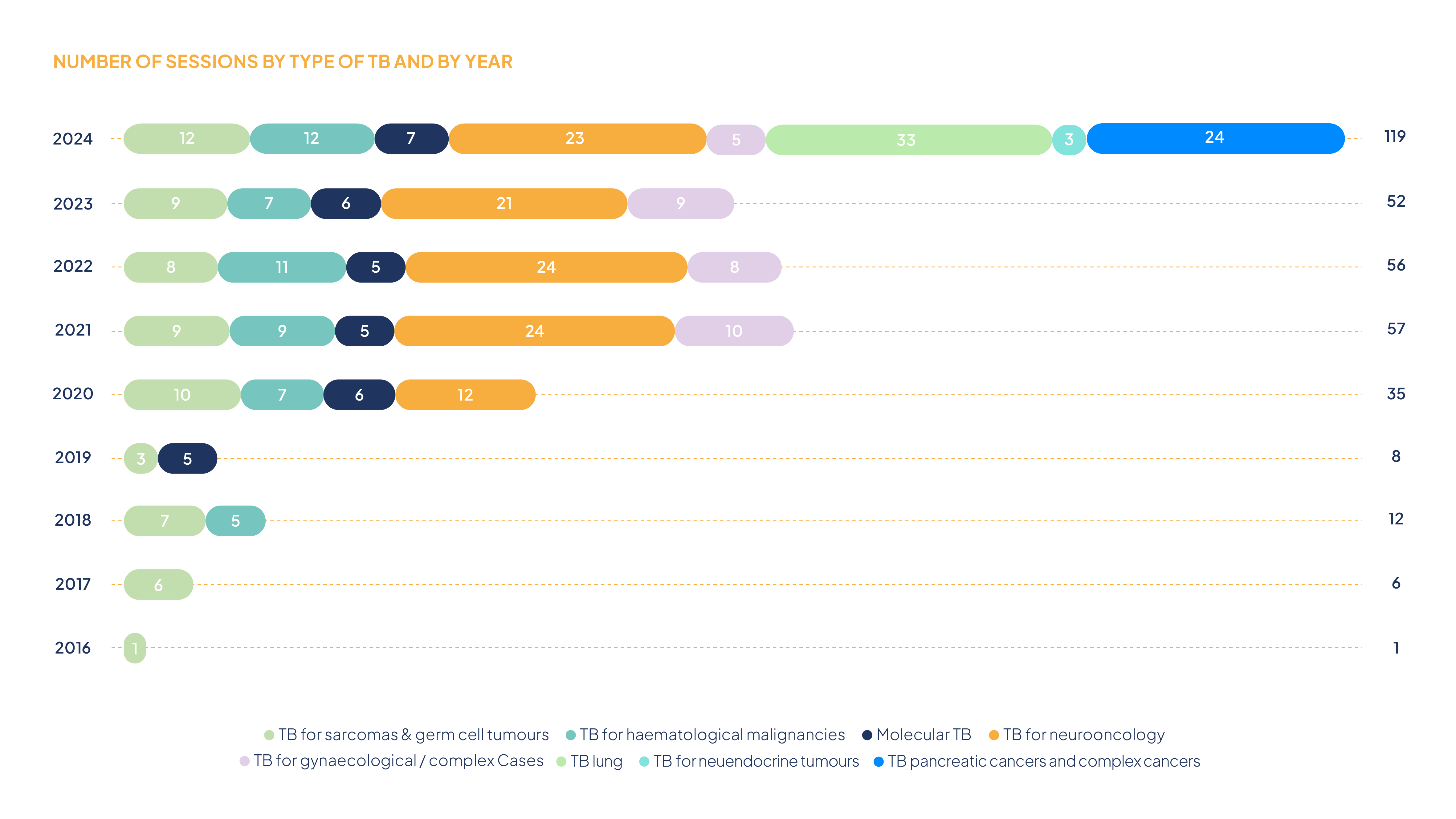 In 2024, the INC organized a total of 119 national TB sessions in accordance with the requirements of the “National Concept for Multidisciplinary Tumour Boards in Oncology,” developed as part of the first National Cancer Plan: